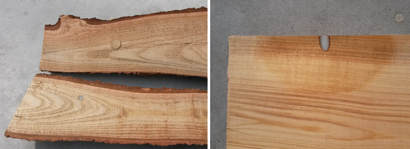 En ziet u de verkleuring rond de roestende schroef? Dat stuk hout wil je niet in je werkstuk hebben. Leidt dus ook tot minder bruikbaarheid van de plank.